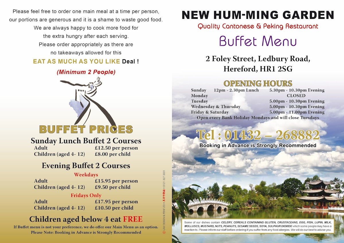 Welcome to New Hum-Ming Garden, a culinary gem nestled in Hereford, UK. This vibrant eatery offers an exquisite buffet experience from Sunday to Thursday evenings, featuring a vast selection of freshly cooked dishes served right to your table. Priced at just £15.95 for adults and £9.50 for children, it’s a haven for food lovers and families alike. The buffet allows for endless exploration with a range of options, including delicious starters and mains.